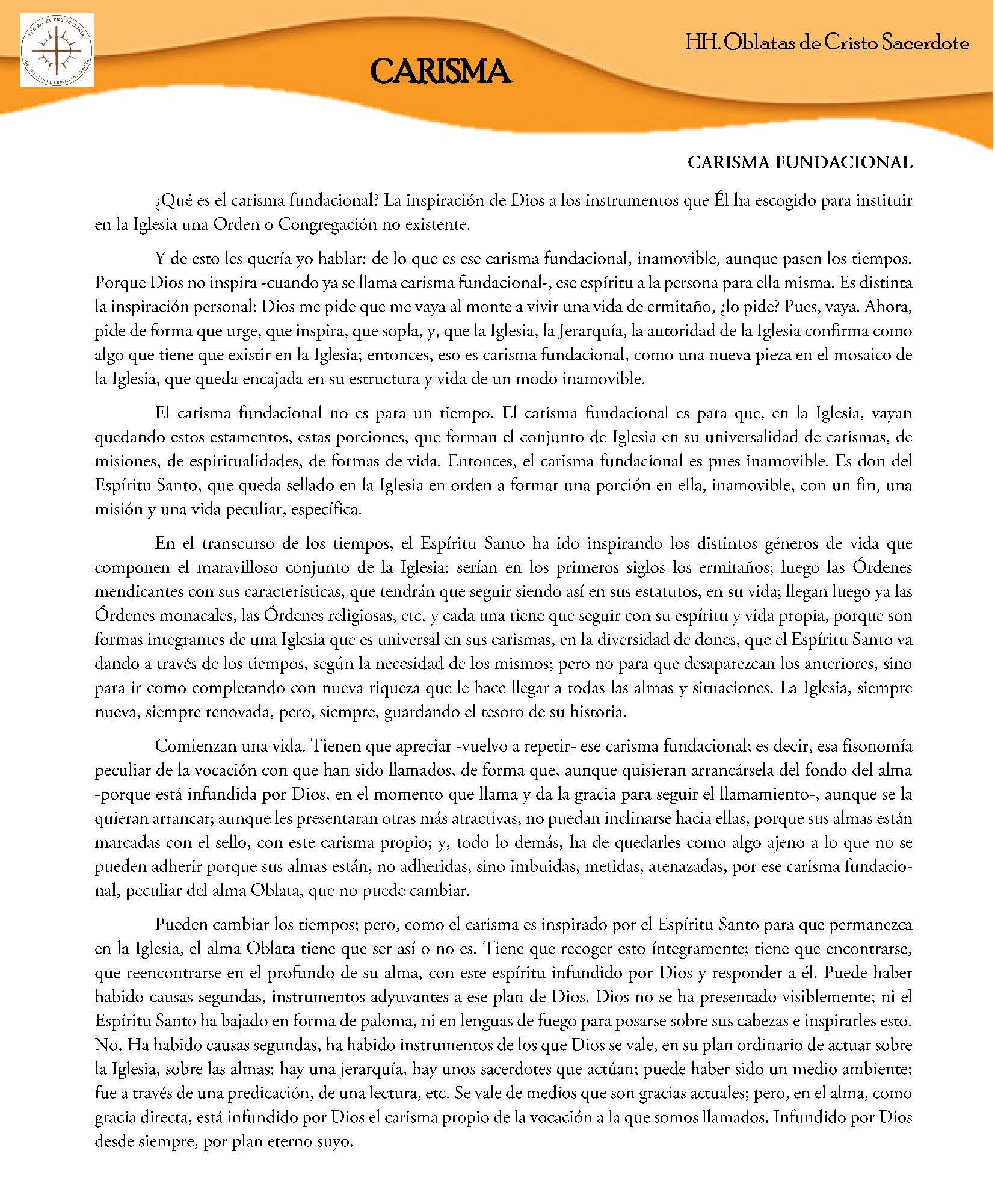 EXPLICANDO EL CARISMA FUNDACIONAL